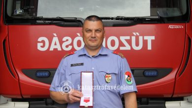 Elismerés: Pásztor László dunaújvárosi tűzoltóparancsnok húsz éve szolgálatban