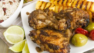 Jamaicai jerk csirke, grillezett ananásszal és babos rizzsel (előkészítés: 20 perc, pihentetés: 4-6 óra, elkészítés 45 perc, elfogyasztás: 10 perc…