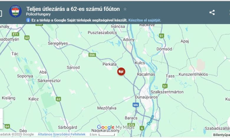 Közlekedési baleset történt ma (november 13-án) 19 óra körül a 62-es számú főút 8-as kilométerszelvényében, ahol két személygépkocsi ütközött össze – adta hírül gyorsjelentésében a Fejér Vármegyei Rendőr-főkapitányság. Mint írták, a helyszíni szemle idejére a rendőrök a főutat teljes szélességében lezárták. A baleset helyszínét a 6208-as számú út érintésével, Adony irányába lehet elkerülni.