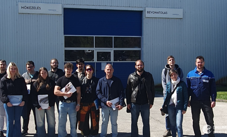 Áprilisban a „Felületi és vékonyréteg-technológiák” tantárgyhoz kapcsolódóan az egyetem anyagmérnök hallgatói a voestalpine HPM Kft. telephelyére látogattak el Dunaharasztiba. A program során lehetőség nyílt a hőkezelési folyamatok megismerésére, a PVD bevonatok ipari előállításának áttekintésére, valamint az anyagvizsgáló laboratórium munkájába is betekinthettek a hallgatók. Ezek a szakmai utak hozzájárultak ahhoz, hogy a hallgatók az oktatás során elsajátított ismereteket valós ipari környezetben elhelyezve láthassák, és képet kapjanak a technológiák gyakorlati alkalmazásáról.