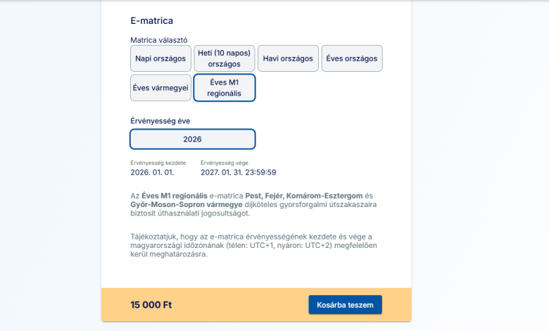 A Nemzeti Útdíjfizetési Szolgáltató (NÚSZ) Zrt. adatai szerint a 2026-ra érvényes éves e-matricák megvásárlásának lehetősége 2december 8-án nyílt meg. Az azóta eltelt egy hétben nagyjából 23 ezer darab 2026-os éves úthasználati jogosultságot vásárolt az utazóközönség, legnagyobbrészt (84 százalékban) hazai felségjelű D1 díjkategóriába tartozó személygépjárművekre.
