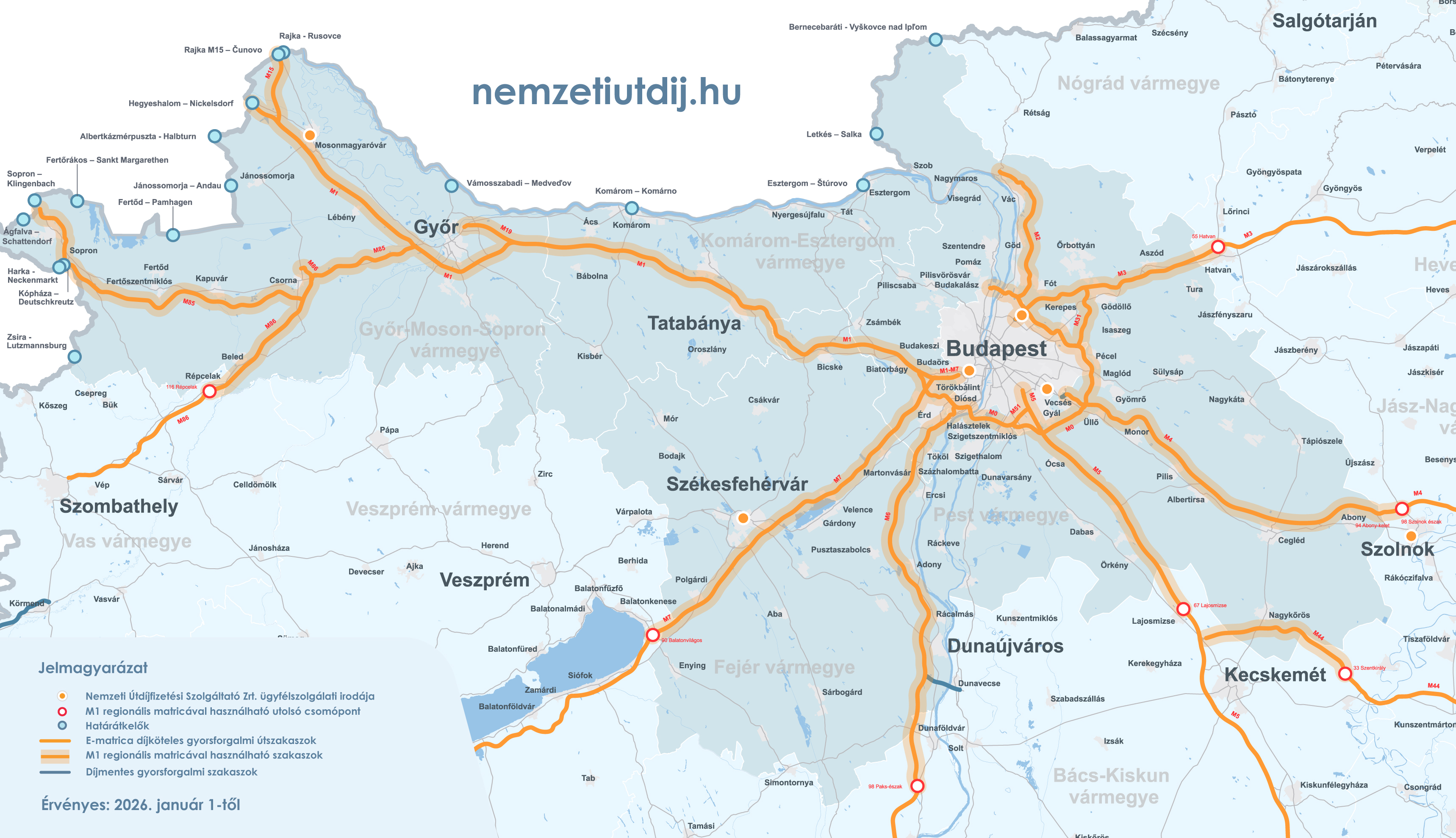 Autópálya-matrica: az M1-re vonatkozó regionális jegy négy vármegyére lesz érvényes!