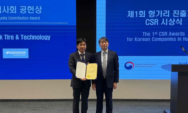 A Hankook elnyerte a Közösségi Hozzájárulás Díjat az I. Magyarországi Koreai Vállalatok CSR Díjátadóján, amelyet a Koreai Köztársaság magyarországi nagykövetsége szervezett Budapesten – erről számolt be az abroncsgyártó vállalat közleményében.