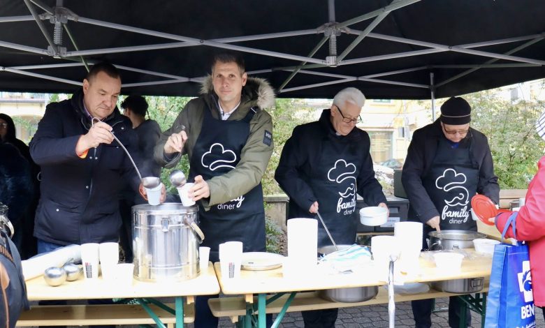A jótékonysági rendezvényre Spányi Antal megyéspüspök idén is személyesen jött el, aki dr. Mészáros Lajos országgyűlési képviselővel köszöntötte, s lélektöltő gondolatok kíséretében szeretettel kínálta az ételeket a vendégeknek. A téren sörpadokat és asztalokat is felállítottak, így a Family Diner Kft. által elkészített székelykáposztát helyben is elfogyaszthatták, de ezen kívül elvitelre is csomagoltak. Az ételek mellett forró teával is szolgáltak a szeretetvendégségen.