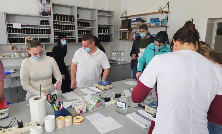 A gyógyszertári látogatás során dr. Csiri Ibolya intézeti főgyógyszerész vezetésével a tanulók nemcsak a különböző munkafolyamatokat ismerhették meg, hanem gyakorlati tapasztalatot is szerezhettek. Előírás alapján saját kezűleg készítettek bőrápoló kézkrémet, amelyet az elkészítést és csomagolást követően haza is vihettek. A dialízis központban betekintést nyerhettek a kezelések menetébe, miközben a szakemberek bemutatták az ott folyó munka hátterét és jelentőségét. A központi sterilizáló részlegen – megfelelő védőöltözetben – végigkövethették az eszközök előkészítésének és sterilizálásának precíz, magas szakmai követelményeket igénylő folyamatát, amelyet Rechtenvaldné Szmolik Tímea részlegvezető mutatott be.